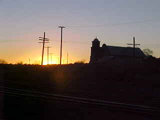 The old Lamy church as the sun set on this extremely cold and windy evening. Back in the warmth of the station, it was time for Queen's "Sheer Heart Attack" and I finished reading Trains Magazine and switched to the new Passenger Train Journal. Besides reading, I did my Sudoku puzzles which really helped to pass the time on trains and during delays.