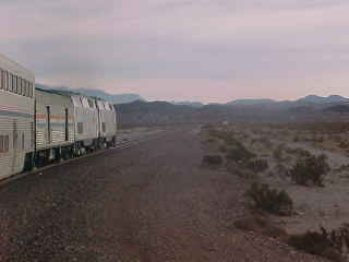 The San Bernardino station. We departed on time and enjoyed the crossing of Cajon Pass from my darkened room, listening to CD 1 of Led Zeppelin's "How the West Was Won". Just before Victorville, I made up my room and called it a night.