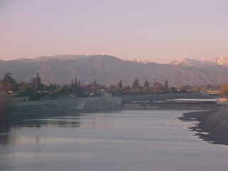 Crossing the Santa Ana River Bridge in Santa Ana Canyon.