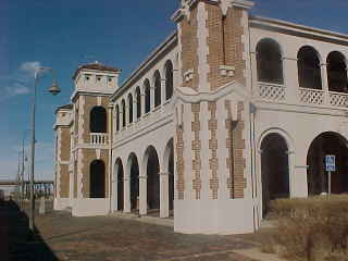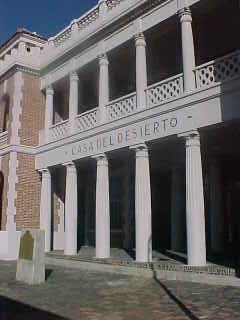 The 1908 Needles station, El Garces, in the early morning light. We left at 6:34 AM {12:49 AM} and started our morning trip across the Mojave Desertand I went to the dining car, was seated with Bob, Jill and Celia, going from Ann Arbor, Michigan to Anaheim and enjoyed French Toast and sausage patties.