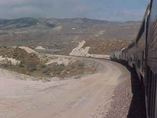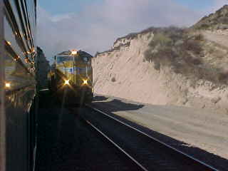 Descending the three percent grade on the south track down Cajon Pass. I put on Young Dubliners' "With All Due Respect" as we made our way to San Bernardino for another fresh air break.