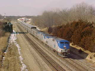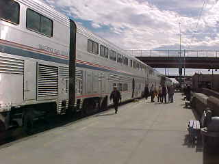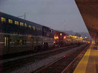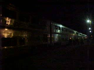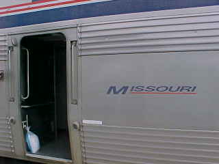 Southwest Chief 4 2/8/2007At 5:30 PM, this train reversed into LAUPT with a consist of P42DCs 68 and 141, baggage 1753, sleepers 32047, 32093 "Missouri", 32076 "Delaware", diner 38016, lounge 33001 and coaches 34016 and 31042. Rudy, the coach car attendant, started to board our car at 6:05 PM and I was assigned seat 47, a large right-side window seat. I settled in for the trip, listening to a solo album by Paul Stanley of Kiss called "Live to Win". We departed on time and by the time we reached Fullerton, I had listened to the CD twice. I inquired about upgrading to a sleeping car room and received a positive response then listened to Kansas' "Live at the Whiskey" and after Fullerton, Conductor Joe Knappe sold me Room 13 in the "Missouri". I hauled my bags through the lounge, diner, "Delaware" and into the "Missouri" and settled into my room for a much more comfortable trip to La Plata.