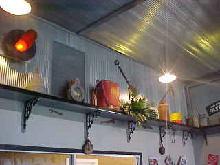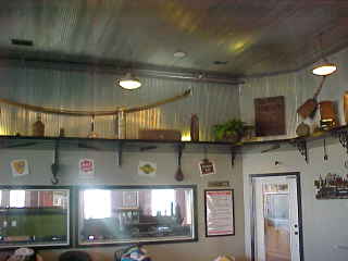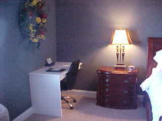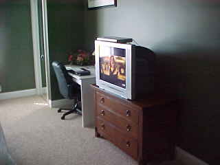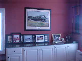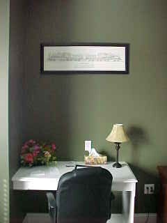 There is a desk area with a drawing of Western Maryland Shay No. 6 above. The next rented film I watched was the new version of "King Kong", after which I called home then checked to see what time the westbound Southwest Chief was expected, and it was running on time. I started the last film, "Open Season", and watched the first 45 minutes of it before walking back over to the Red Rooster for my last meal in La Plata on this trip.