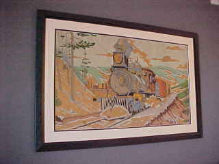 The room has a very comfortable bed with a picture of B&O steam engine 867 above.