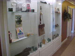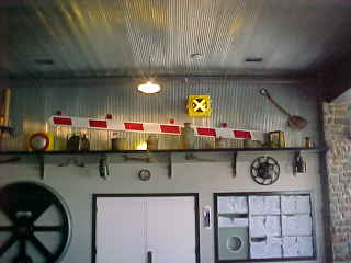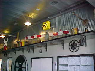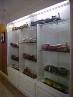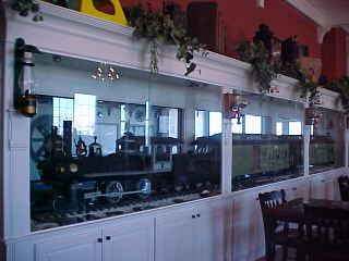 In the wall that separates the lobby from the heated indoor pool is a very large train along with more railroad memorabilia on the ledge above.
