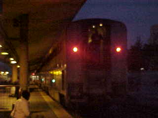 The train took the famous "S" curve at Chappelle. We continued onto Las Vegas and I went to the lounge car to wait to be called into the diner for dinner. I was seated with a gentleman going to Raton, then the bus to Pueblo, and another young man returning home to Alderson, West Virginia. I enjoyed the pork chop and the delicious chocolate cake the back in my room, it was Billy Joel's "Stormfront" which took me to Raton, the next fresh air stop.