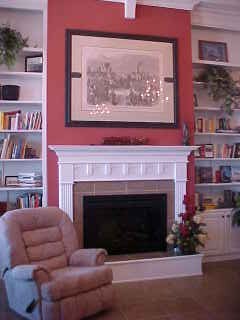 To the right is the fireplace, with the famous May 10th, 1869 picture of the completion of the Transcontinental Railroad at Promontory Point, Utah, above and several very comfortable chairs.