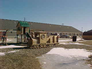 Returning outside, there is aplayground area for the visiting children near the back door.
