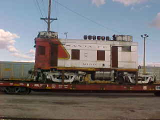 1937 was also the year that the Super Chief was streamlined. EMC's designs had made a quantum leap in just five years, from boxy, distillate-powered M.190 to the sleak red and silver diesel-powered E1's pulling the Super. From 1936 to 1955, M.190's usual assignment was the Amarillo-Plainview-Lubbock run. It did stray some after World War II and before it was dieselized in 1949 and the old Winton engine was replaced with a surplus marine 12-567 salvaged from a Navy Landing Ship-Tank. In 1956, the Albuquerque shops refurbished the car, painted it in red and silver warbonnet, and sent it to Clovis to power the train from there to Carlsbad and back. This service, the last Santa Fe "motor" run, lasted until 1967.