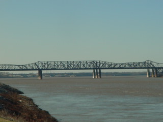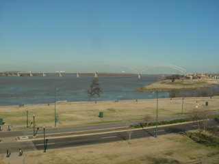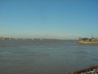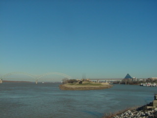 Looking north at Mud Island and the Interstate 40 bridge across the Mississippi River.