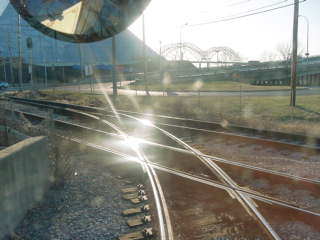 Southbound Streetcar 539 before my next northbound car arrived. However, this trolley only went as far as almost to Butler Street, where I had to transfer to another car to take me to Exchange station. Anyone trying to go further had to transfer to a bus. I stayed on and went back to Butler then switched back to another southbound car, taking that south to Peabody Street, where I detrained and walked towards the Mississippi River to Vance Park.