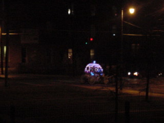 A horse-drawn carriage decorated for New Year's Eve.