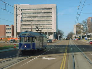 I detrained and photographed streetcar 1794 then my streetcar for the return trip to downtown came from its turn-around point and I boarded, sitting next to the operator so I could take photographs.