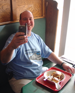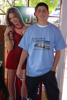 Metrolink 609 4/25/2007 Let the trip commence!Metrolink 609 arrived and I boarded the cab car for the trip to Fullerton. I met my Amtrak conductor, Buck Cleveland, who would be working the Los Angeles-to-Kingman portion of the Southwest Chief. It was a quick trip with stops in Orange and Anaheim. I detrained at Fullerton and no one met me, so I walked over to Knowlwoods Restaurant.