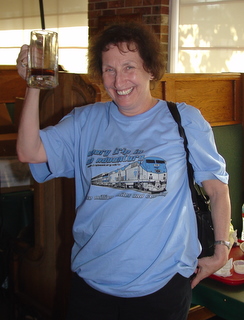 Our normal Train Travel Meetup Group meeting was changed to April 25th. I arrived and Steve Grande gave me a blue trip shirt and five white Million Rail Mile shirts that my friend Tom Anderson designed. I talked to everyone before ordering a hot dog and a chocolate malt. My mother arrived by car and was finally was able to meet all my friends.