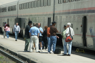 Later, we enjoyed the fresh air stop in Raton we were called for dinner. Richard, Anton, Chris Parker and I were seated together, with me enjoying the pork chop and chocolate cake. Our meal lasted nearly to La Junta where I made a run to Safeway for some Coca-Cola for my big moment in the sun tomorrow, if all goes according to plan the rest of the way to the bridge. We departed on time and Richard then had me as a guest on the Internet radio show "The Travel Hub" where I talked about completing a million rail miles. After Lamar, I told some John Cleese jokes in the lounge car before calling it a night, in anticipation of my big day tomorrow. I slept extremely well.