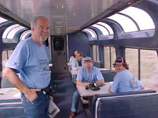 I then went back to the lounge car to enjoy the morning and were joined by Carl, Tom and Larry. After a large group boarded in Gallup, we all enjoyed the New Mexico red mesas and I jokingly named one of them the 1,000,000 Rail Mile Red Mesa.