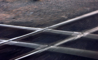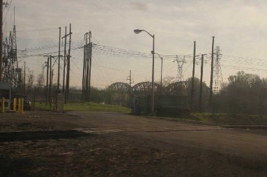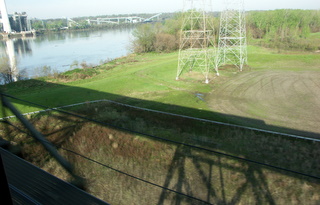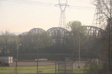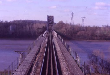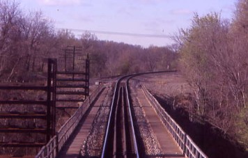 C.M. Carl caught the train's shadow as we proceeded off the bridge.