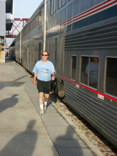 The train then pulled the coaches to the platform and the conductor opened the door with Tom and Jonathan stepping off. Next a lady who thought it was a smoking stop was told by the conductor to get out of the way. I then stepped off the Southwest Chief.