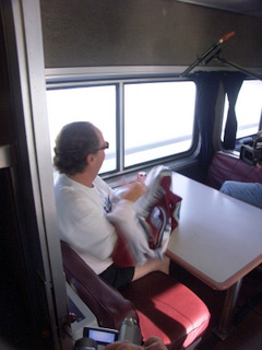 A Union Pacific freight passed through during our layover. We departed ten minutes late and my quest for the one million rail miles was almost over. Since I had ridden over this line less than three weeks ago at the back door of that train, I knew where everything was for my big moment in my life. I went to the crew lounge in the transition sleeper to wait for the rest of the group to arrive.