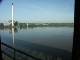 We had reached this spot! The exact spot, MP 425.5 of BNSF's Marceline Subdivision on the Missouri River bridge east of Sibley, Missouri. The exact time was 8:26 AM Central Daylight Time as I started to put on the Million Mile hockey jersey.