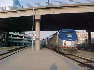 The crossing at State Line Junction took us from Kansas into Missouri. We arrived at Kansas City Union Station where Andy Smith and I detrained and walked straight into the station where we met Steve, whom I had met on the Pacific Surfliner. He is attending the BNSF Academy outside Kansas City and is a reader of my website. We all walked outside to see the railroad exhibits.