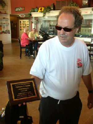 C.M. Me in the lobby with Anton's plaque. We all met back there at 9:30 AM and were driven to the station.