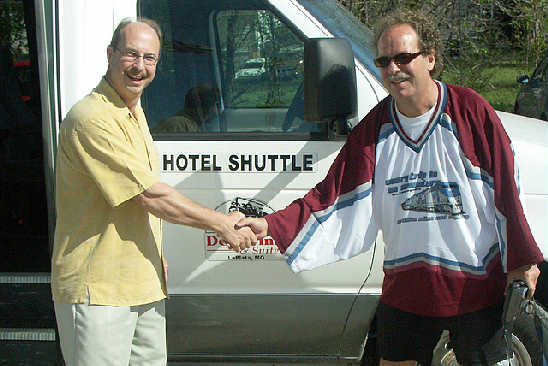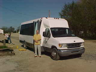 Tom Marshall and the Depot Inn's brand new 24 passenger bus.