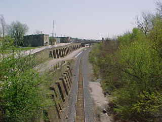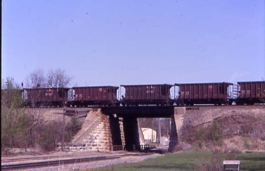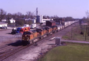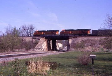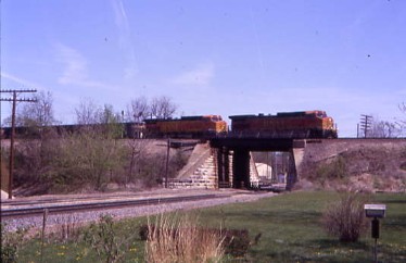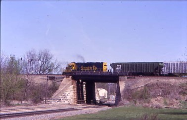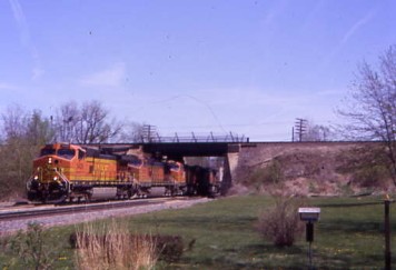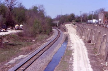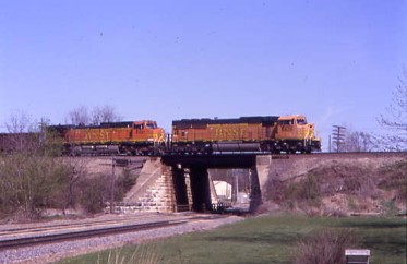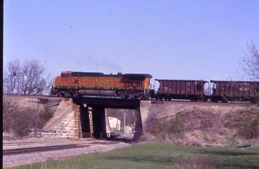 The BNSF line through Macon with the old Wabash Railroad bridge still in place.