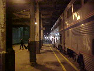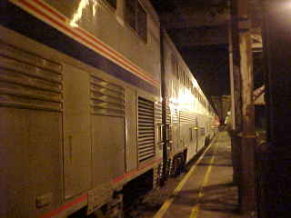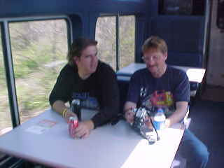 D.M. Dutch and I down at the La Plata Amtrak station. The Southwest Chief arrived a few minutes late and we said goodbye to all who left that evening. On the way back to the hotel, we returned the "Lookout Point" for a few minutes then Tom, Chris and I then watched highlights of "Monty Python's Meaning of Life" then I used the sauna tub before calling it a night.