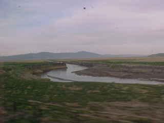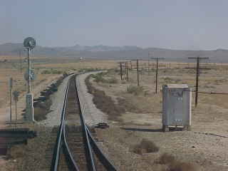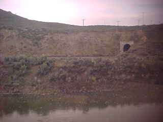 A big bend in the Humboldt River. I went to the dining car at 6:15 AM and was seated with the Winstons and enjoyed French toast and sausage patties. Most of my meals on the California Zephyr were served by the most excellent and funny waiter Alexander Walton. The train stopped at Winnemucca.