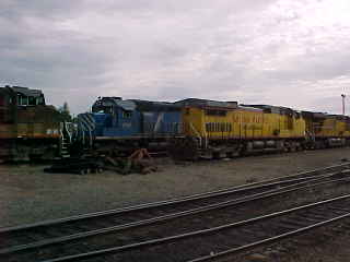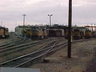 Locomotives at Roseville. At the south end of the yard, we were stopped for a westbound Union Pacific freight to clear out of our way. After I walked to the rear of the train, we started to move.