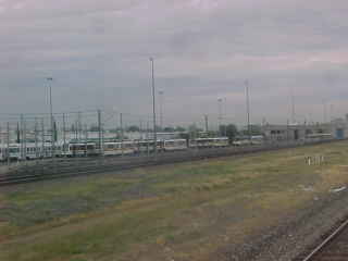 The Siemens Plant in South Sacramento. The train made its way to Lodi and the Altamont Commuter Express station in Stockton before turning south onto the BNSF mainline to Modesto then went into the siding at Turlock/Denair where we met Amtrak 712.