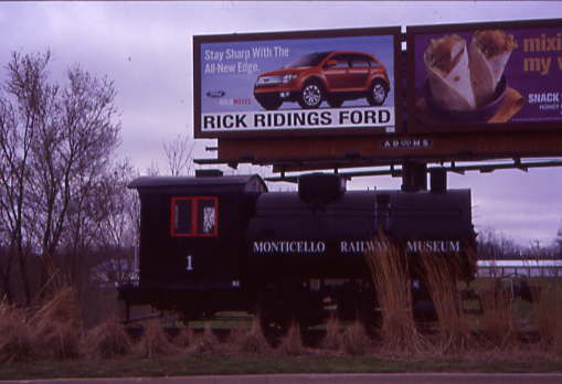 I went downstairs into Indianapolis Union Station and was spotted by Chris Parker, who had flown in yesterday. We walked out to the rental car and soon were on our way out of town for Illinois by way of the Indianapolis Motor Speedway on this rather dark and windy morning. We drove out of Indiana on Interstate 74 through some rain showers into Illinois then at Champaign, we visited a Walmart for some warmer clothes before going to Bob Evans Restaurant for a fantastic French Toast platter. On the road again, we proceeded to Interstate 57 South for a couple of miles to Interstate 72, which we took west to Monticello and exited onto Iron Horse Boulevard, which led us to the Monticello Railway Museum.