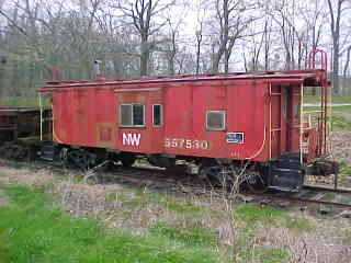 Norfolk & Western bay window caboose 557530 built by New York, Chicago and St. Louis Railroad (Nickel Plate Road) as 430 in 1960. This style offers a better view for the conductor of their train than a cupola would.