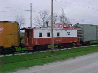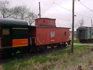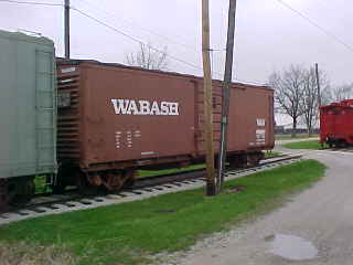 Wabash Railroad steel caboose 2824 built by the railroad at their Decatur, Illinois shops in 1949. It has been backdated to late Wabash exterior and interior arrangements by the Wabash Historical Society, and equipped with interior exhibits.