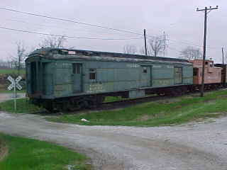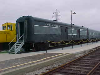 Delaware & Hudson baggage car 405 built by American Car and Foundry in 1957 and sold to the Gulf, Mobile & Ohio Railroad in 1963. It currently houses exhibits on display where visitors can learn about railroad history.
