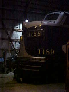 Wabash Railway F7A 1189 built by General Motors Electro-Motive Diesel Division in 1953. Number 1189 was the last F7A ordered by the Wabash and was the last built by General Motors Division, Ltd. at London, Ontario, and spent most of its operational time in Fort Erie, Ontario. Retired in 1979, 1189 was sent to Decatur, Illinois to be scrapped but was donated to the Museum by the Norfolk and Western in 1980. After arrival at the museum, much body work was done as well as required mechanical work to return the locomotive to service.
