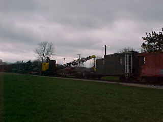 Bates and Rogers Locomotive Crane 11442 built by Industrial Brownhoist in 1944 and Norfolk & Western Bunk Car 527103 built by Norfolk & Western in 1965. Oil fired, the crane has a lifting capacity of up to 60,000 lbs and can move under its own power. This machine is currently used at the museum for heavy lifting jobs.