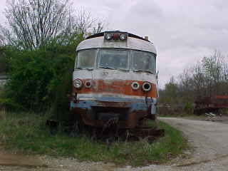 The Ted Monier Parts and Salvage Scrap Yard. Inside we saw the former part of an Amtrak French Turbo Train.