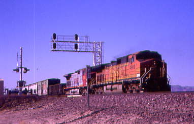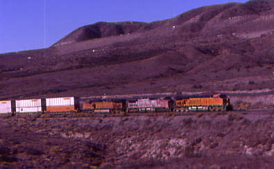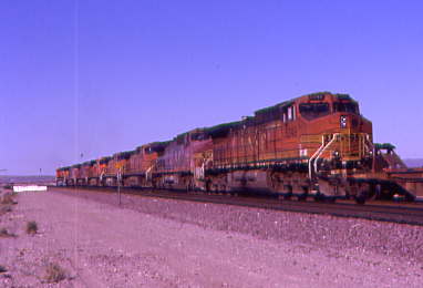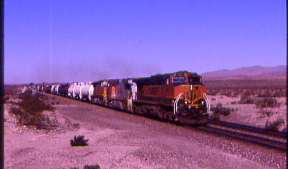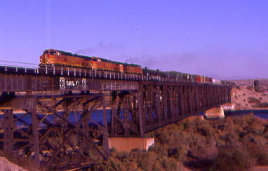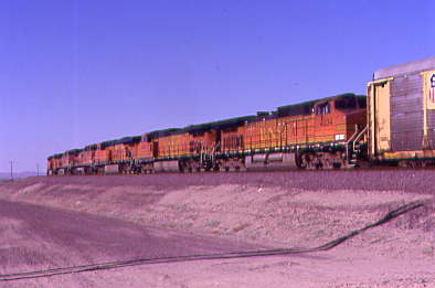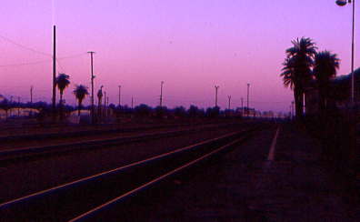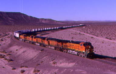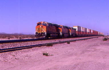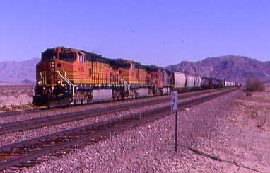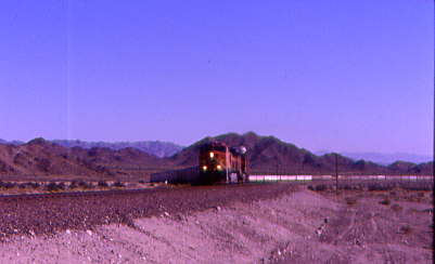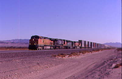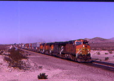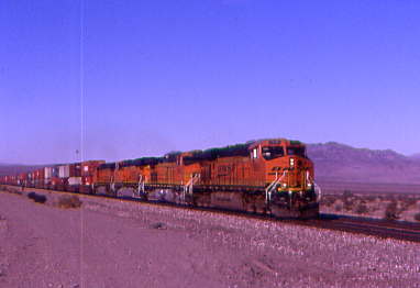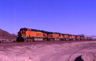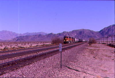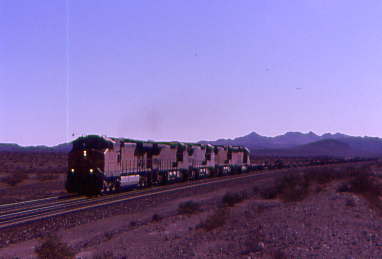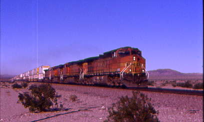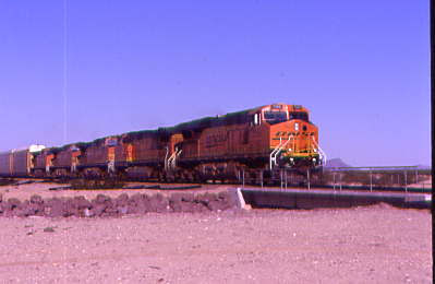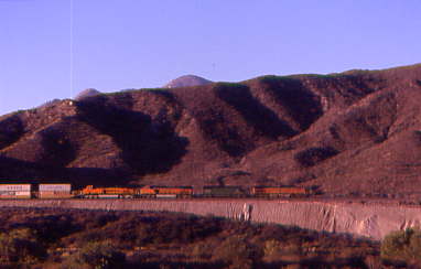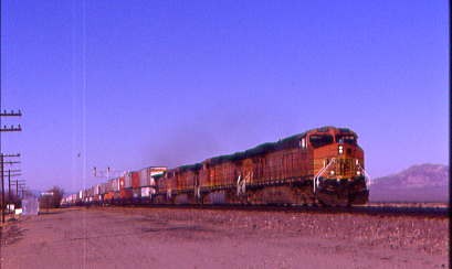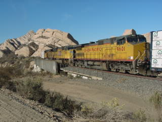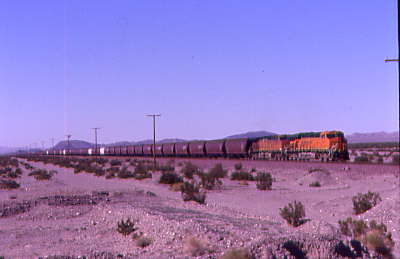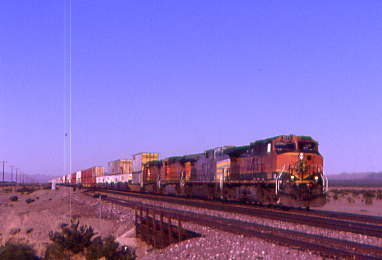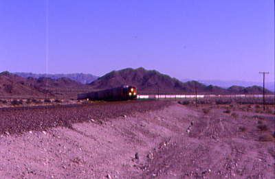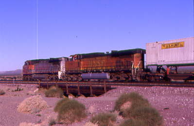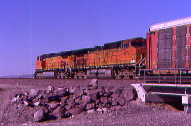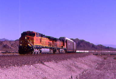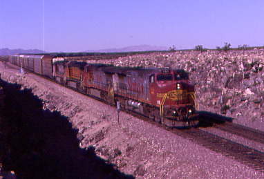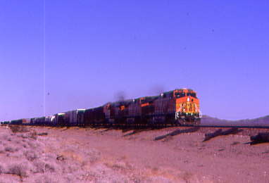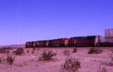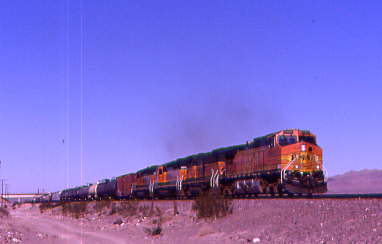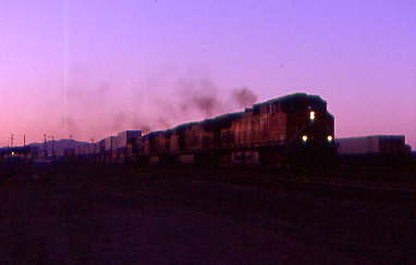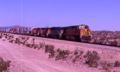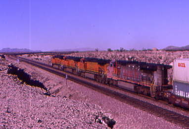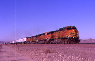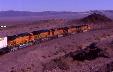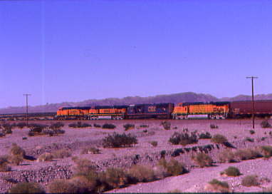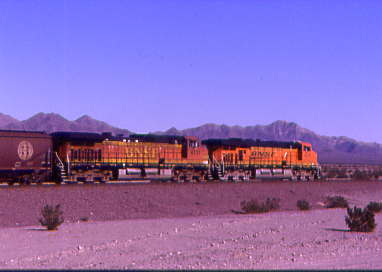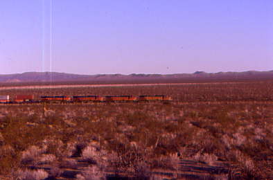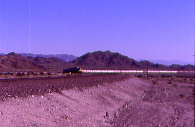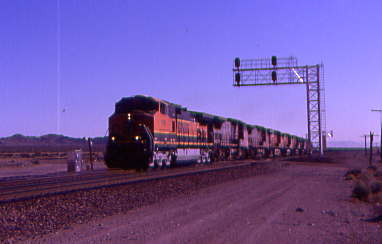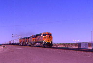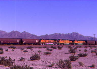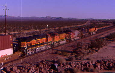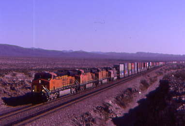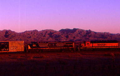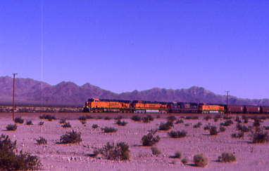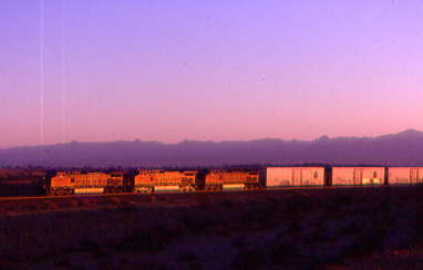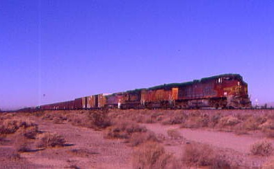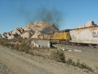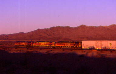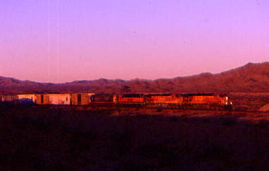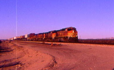 11/24/2007We arose just before sunrise and packed, checked out and filled the car before driving west out of Needles on Intestate 40. Just after we crossed the tracks near Java, we spotted our first train.