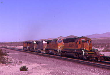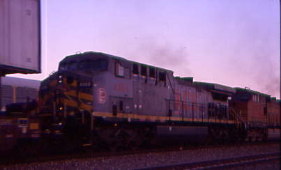 Back in Needles, we caught BNSF 4515 East with Kansas City Southern 4503 in its consist.