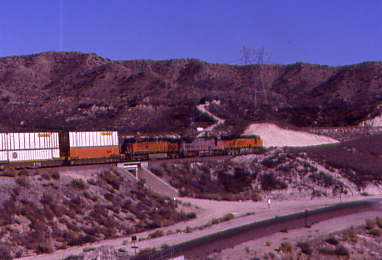 11/23/2007 I was ready to go and Chris picked me up on time and we made our way north on California Highway 57 to Interstate 210 to Interstate 15, taking that to Kenwood Road then driving old Highway 66 through Blu Cut and just below Cajon, spotted our first train.