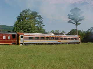 Tennessee Valley Railroad Museum coach 907, ex. Southern Railway 907, nee Central of Georgia Railway 543 built by American Car and Foundry in 1947. It proudly served on the "Nancy Hanks II", a passenger service connecting Atlanta and Savannah, Georgia. During this time, the original Nancy Hanks II livery was replaced with Southern Railway's coach Green" or "Pullman No. 4 Green" with block lettering. Ultimately the Southern Railway found the 907 surplus and the car was donated to the Tennessee Valley Railroad Museum in 1982. A few years later, after service with its original electro-mechanical air conditioning, Southern Railway lettering, and other machinery, TVRM rebuilt the car to be "self-sufficient" and was the first coach in TVRM's collection to be so rebuilt, enabling a wider operational area, and no longer limiting which coaches it could run alongside. or what locomotives could pull it. The rebuilt car was turned out in TVRM's Colonial Red Livery, with a refinished grey interior.