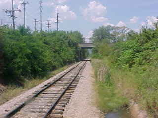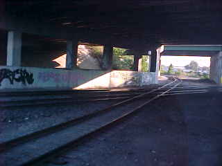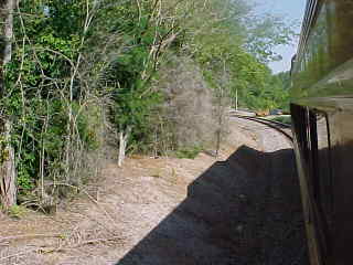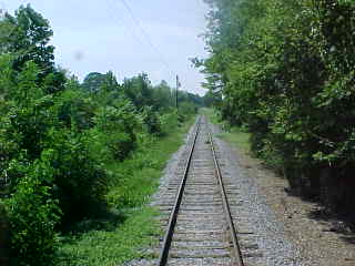 We turned west and the north end of Lookout Mountain could be seen. Next we went under a bridge which carried the Norfolk Southern main line to Birmingham.