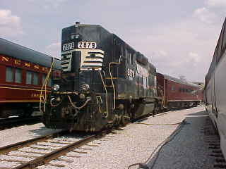 Norfolk Southern GP38 2879, ex. Southern 2879, nee Tennessee, Alabama and Georgia 80 built by Electro-Motive Division in 1968, the first high-hood GP38 produced. The locomotive was named "The John A. Chambliss" in honuor of the railroad’s vice-president and was dedicated on his 80th birthday, hence being numbered 80. After the TAG was acquired by the Southern Railway, the 80 became Southern Railway 2879, and later Norfolk Southern 2879.