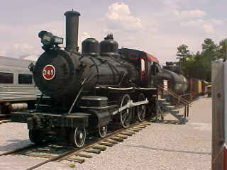 Tennessee Valley Railroad Museum 4-4-0 349, ex. Stone Mountain Scenic Railroad 349 1963, exx. Central of Georgia 349 1926, exxx. Central of George 1581 1912, exxxx. Central of Georgia 1587 1895, nee Savannah and Western Railroad 557, built by Burnham, Williams and Company, an early incarnation of the Baldwin Locomotive Works in 1891. In 1950, the steam engine was leased to the Talbotton Railroad Company, a seven-mile shortline connecting Talbotton with the Southwestern Railroad at Bostick, Georgia (now Junction City). The Talbotton lease ended in 1954.