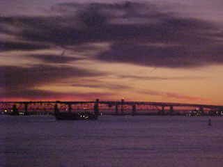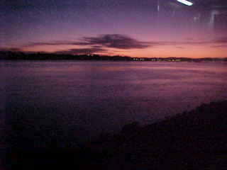 Pre-sunrise pictures along the Carquinez Strait. I helped an elderly couple to the dining car for breakfast where Julio, an excellent waiter, served me every meal on the trip. I had French Toast and sausage patties and was seated with Betsy, along with Scott and Tracy, going to Portland. We stopped at Martinez before crossing the high bridge just north of there.