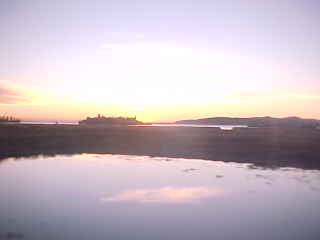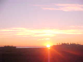 The sun rising over the United States Navy Mothball fleet before crossing the Suisan Marsh.