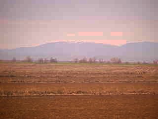 The Sutter Buttes with the Coast Range to the west of the Sacramento Valley south of Chico.